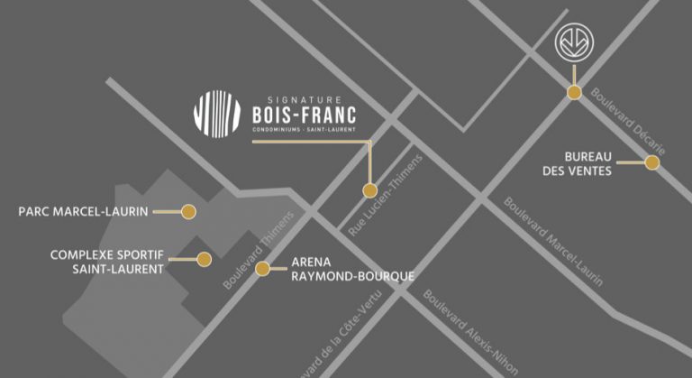 Situé dans l’ouest de Montréal, Saint-Laurent est un quartier dynamique et en constante évolution. Il offre un excellent équilibre entre vie urbaine et tranquillité. En optant pour un condo au sein du projet Signature Bois-Franc, vous profiterez d’un accès facile aux transports en commun, au parc Marcel-Laurin, au Complexe sportif Saint-Laurent, à l’aréna Raymond-Bourque ainsi qu’à une grande variété de commerces et de restaurants, à distance de marche.